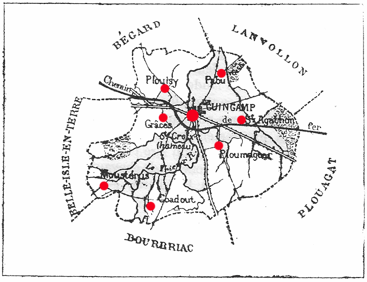 Trégonneau; E. Pommerit et Saint-Agathon; S. Saint-Agathon, Guingamp ; O.