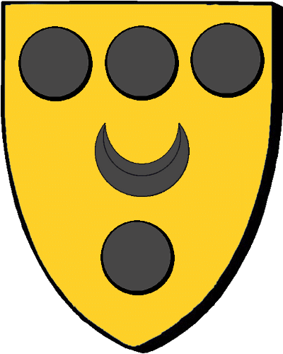 "d'or au croissant de lune de sable, accompagné de 4 besants de sable, en 3 en chef et 1 en pointe"