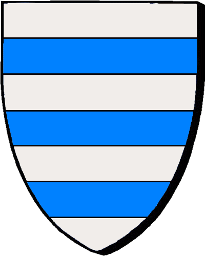 "d'argent à 3 fasces d'azur, accompagnées de 10 mouchetures d'hermine, 4, 3 ,2, 1 sur l'argent"