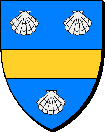 "D'azur à la fasce d'or, accompagnée de trois coquilles d'argent" / "En glazur e dreustell en aour, heuliet gant teir c'hregilhenn en arc'hant"