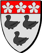 "de sable au chef endenché d'argent, chargé de trois coquilles de gueules" " en sabel, e gab dentek en arc'hant, karget gant teir c'hregilhenn en gwad". - Louis, président et juge universel de Bretagne en 1528; marié à Olive Thierry; - Fondu dans d'Espinay du Bois-du-Liers (PPC) |