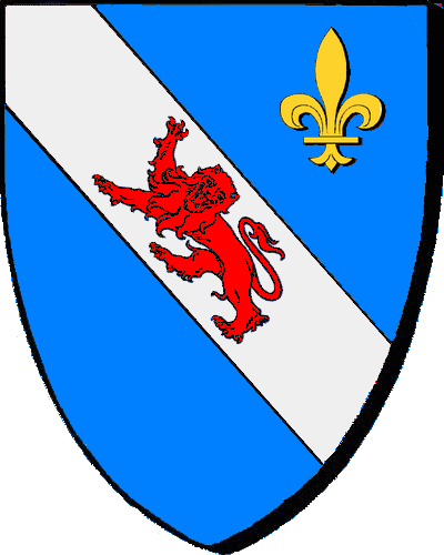 Seigneurs de Cesson, évêché de Rennes. "d'azur à la bande d'argent chargée d'un léopard de gueules, et surmontées d'une fleur de lys d'or" "En glazur e sourin en arc'hant, karget gant ul leonparzh en gwad, ha leinet gant ur vlourdilizenn en aour" * Guillaume, sénéchal de Vitré en 1382. (PPC) |