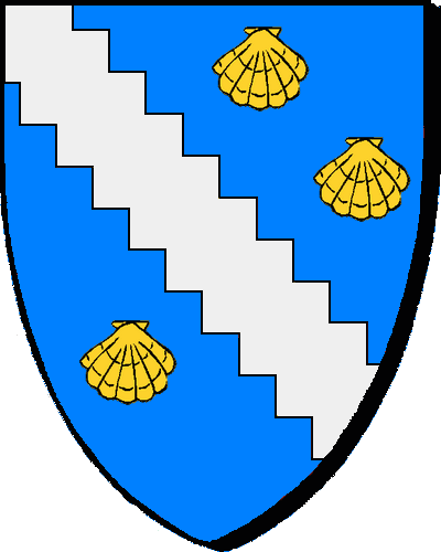 Créhen; du Pont, de la Vieuville,; de Lesraudais; de la Lande; de Leffandais "d'azur à la bande dentée d'argent accompagnée de trois coquilles d'or" "en glazur e sourin dentek en arc'hant heuliet gant teir c'hregilhenn en aour" montres de 1448 à 1543 [PPC] |