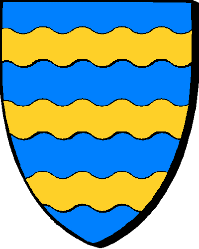 Ergué-Armel "de gueules au chef endanché d'or de cinq pièces" "en gwad e gab dentek en aour a bemp pezh" Hervé de Keraldanet, témoin au procès de canonisation de Charles de Blois en 1371 (PPC) |