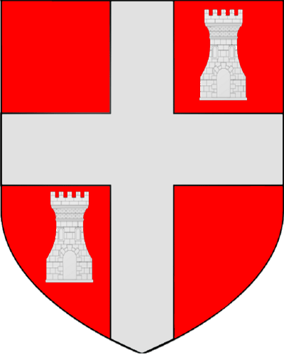 Vildé; du Lescoët et Lesquivit en Dirinon "de gueules au chevron d'argent, accompagné de trois coquilles de même" "en gwad, e gebren en arc'hant, eilet gant teir kregilhenn ivez en arc'hant" 1554; 1594; 1670 (G.L.B) (PPC) |