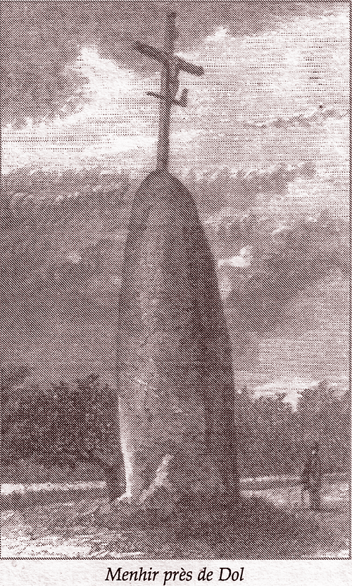Étymologie / Gerdarzh : * Marc Deceneux (1988) : " Selon certains auteurs, le tertre ( ... du Mont-Dol ...), porte le nom de la ville voisine, venant d'un radical celtique *DOL désignant une plaine alluviale au bord d'un cours d'eau. Pour d'autres, le MONT-DOL est en breton le "MENEZ-DOL", la "montagne-table", ainsi appelée à cause de sa forme de plateau élevé. On ne sait laquelle de ces deux hypothèses plausibles est exacte". * Gwenc'hlan Le Scouézec(1997) : "Ce vocable est obscur : on a proposé d'y voir la racine prélatine tull-, qui signifie "hauteur", "éminence", et, plus récemment, le vieux terme breton pour désigner un méandre de rivière. Mais il est difficile de formuler une hypothèse qui convienne à la fois au Mont-Dol, situé à quelques kilomètres de la ville, dans les Marais, et à l'agglomération moderne". * Éditions Flohic (2000) : " peut-être d'un toponyme breton signifiant table, par référence à un dolmen qui aurait couronné le Mont-Dol ou à un méandre de rivière et, par extension, le terrain entouré par ce méandre." |