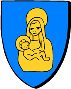 Armoiries; blason; logo : * Daniel Delattre (2004) : "de gueules à deux clés d'or en sautoir, et brochant une épée d'argent pommée d'or, la pointe vers le haut, au chef d'hermine" * Froger et Pressensé (2008) : non documenté * Wikipédia : "de gueules à l'épée haute d'argent, à deux clefs du même passées en sautoir et brochant sur l'épée; au chef d'hermine" ----------- * JC Even : "en gwad, e zaou alc'hwez lamellet en aour, ur c'hleze peuliet en arc'hant, dornellek en aour, beg ouzh kab, balirant; e gab en erminoù" Ce blason figure sur le fauteuil du célébrant de l'église saint Pierre et saint Paul. Les clefs sont d'or. |