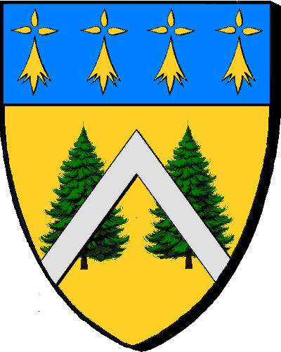 alias "d'azur semé de billettes d'argent, à la cotice d'hermines" "en glazur hadet gant kanochennoù en arc'hant, e c'housourin en erminoù" (PPC) |
