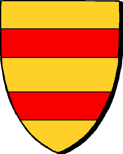 ramage de Poher barons dudit lieu en 1512 et seigneurs de Locquénvel, en Duault; de Kerelleau, en Kermaria-Sulard; barons du Vieux-Châtel, en Plounévez-Porzay; seigneurs de Saint-Bihy, en Plélo; de Tressigneaux, en Plounez; du Dresnay, en Plougras; de la Roche, de l'Oursière, de la Ville-Chevalier, en Plouagat; du Plessix-Eon et de Kerjean, en Plufur; de Kerampont, du Clos, de Kerlabourat, en Saint-Gilles-Pligeau; de Kerhoz, en Pleubian; de la Saissonnais, de Castelriec, de la Croix-Cholin, en Ploufragan; de la Villetual, de la Villeglé, de Kerlan, en Sibiril; de Keroc'hant et du Mescam, en Hanvec; de Kerprigent, en Plounérin; de Kerbridou et du Rest, en Plouézoc'h; de Guernisac et du Vieux-Châtel, en Taulé; de Pontplancoët, en Plougasnou; de Kermouster, en Langoat; de Châteaufur, en Plounévez-Lochrist; de Kermartin, en Minihy-Tréguier; de la Vieille-Motte, en Tonquédec; de Saint-Hugeon, en Brélévénez; de Kernéguez (Loguivy-Lannion ?) "burelé d'argent et de gueules de dix pièces" "goudreustellet etre arc'hant ha gwad a zek pezh" sceau / siell 1372 devise / ger-ardamez : E peb amzer, Quélen (En tout temps Quélen) (PPC) |