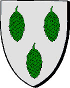"d'argent à trois pommes de pin versées de gueules" "en arc'hant e deir aval pin war o eneb en gwad" devise / ger-ardamez : Nil altius (PPC) |