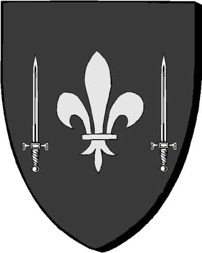 "de sable à la fleur de lys d'argent accompagnée de deux épées de même" "en sabel e vlourdilizenn en arc'hant heuliet gant daou c'hleze ivez en arc'hant" références et montres de 1481 à 1543 (PPC)