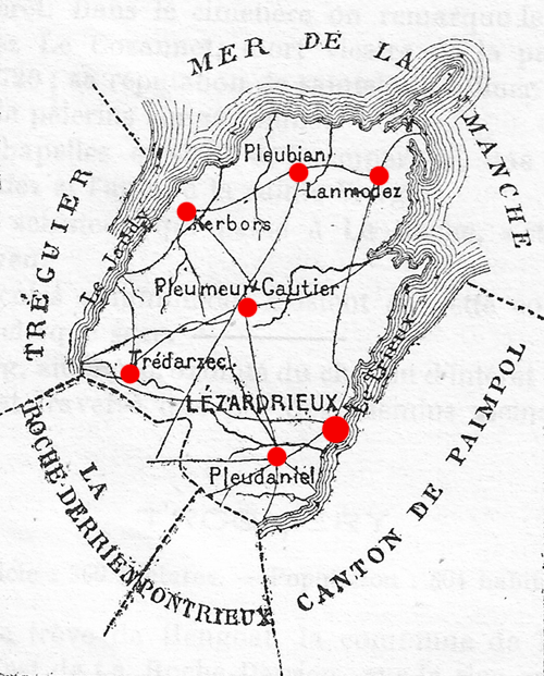 Lézardrieux; S. Pleudaniel, Honguat; O. Trédarzec. — Princip. vill.