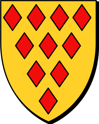 Réf. et montres de 1427 à 1513, dites paroisses de Saint-Malo et Dol. "d'or à dix losanges de gueules" "en aour e zek dalbennan en gwad" - Eonet, de la paroisse de Guillac, se dit noble, réformation de 1427; - Jean, procureur du roi au siège de Ploërmel, puis conseiller au Parlement de Bretagne en 1576; épouse : 1° : Marguerite de Guitté, 2° : Françoise Giffard. (PPC) |