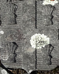 "d'azur à la croix d'argent, cantonnée de quatre gerbes liées d'or" |