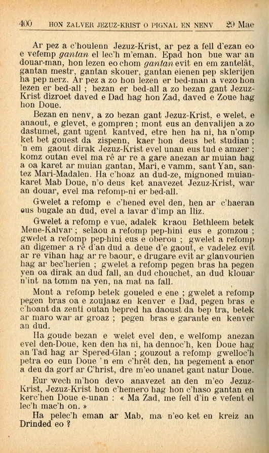 aou-ugent devez goude ma oa savet eus a varo da veo, Hon Zalver Jezuz-Krist a gimiadas diouz e