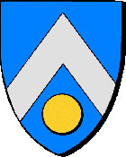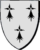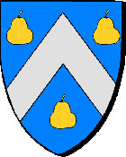 "d'argent au chevron de sable, chargé de trois coquilles d'or"