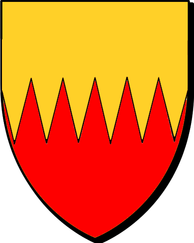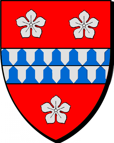 "d'azur au chevron d'or, accompagné de trois pommes de pin de même" "en glazur e gebrenn en aour, heuliet gant teir aval-pin ivez en aour" - François, président aux Grands-Jours de Bretagne en 1538, puis président à mortier au Parlement de Bretagne en 1554 - René, président à mortier au Parlement de Bretagne en 1556 - Pierre, conseiller au Parlement de Bretagne en 1565 - René, (le même ?) président à mortier au Parlement de Bretagne en 1570 Une branche fondue en 1697 dans Contades; une autre branche transplantée dans l'Orléanais, y maintenue en 1668 |