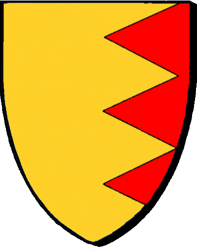 Ext. réf. 1671; sept. gén. ress. de Rennes. "d'azur à la bande endentée d'or" / "en glazur e sourin dentek en aour" - Guillaume, épouse vers 1480 Jeanne de Broël; - deux conseillers au Parlement de Bretagne en 1620 et 1649. - Louis, conseiller au Parlement de Bretagne en 1620; - René, conseiller au Parlement de Bretagne en 1649; Fondu dans CHAMPION. |