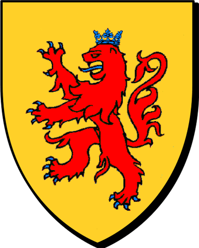 "d'argent à la fleur de lys de gueules" / "en arc'hant e vlourdilizenn en gwad". - Pierre, alloué et lieutenant-général au présidial de Nantes, conseiller au Parlement de Bretagne en 1570 |