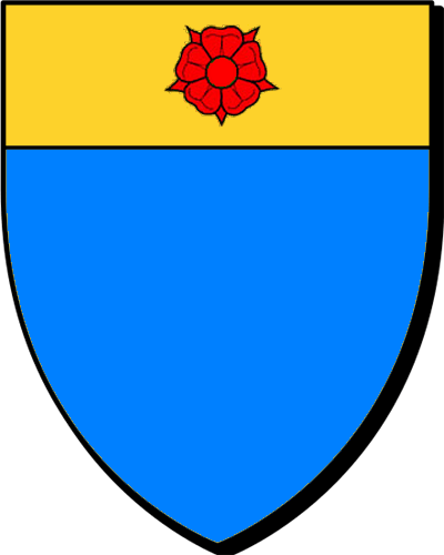 "d'argent à la fasce de gueules, accompagnée de trois roses de même" "en arc'hant e dreustell en gwad, heuliet gant teir rozenn ivez en gwad" - Mathias, (ou Mathieu ?) conseiller au Parlement de Bretagne en 1569; - un maire d'Angers en 1707. |