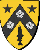 Famille Nail : seigneurs de Mescaradec, en Lannilis, et Saint-Maudez, en Sibiril : "d'or au chevron de sable, chargé de trois roses d'argent / en aour e gebrenn en sabel karget gant teir rozenn en arc'hant" |