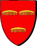 Chevalerie et la Touche, en le Vallet. "de gueules à trois peignes d'or" / "en gwad, e deir grib en aour". 1670. (PPC) |