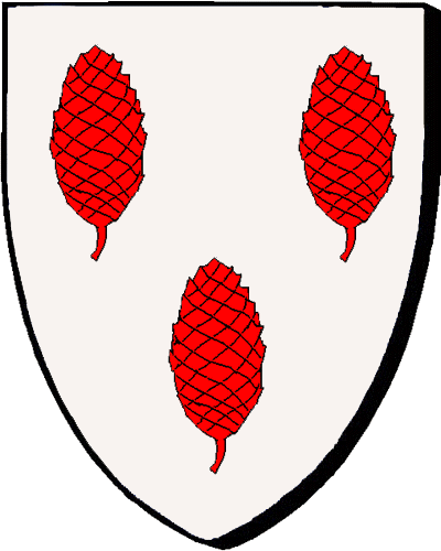 Famille le Trésiguidy : "d'or à 3 pommes de pin de gueules / en aour, e deir aval pin en gwad" |