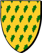Famille Talbot : originaire de Normandie, puis d'Angleterre; seigneur de Fournival; compte de Shrewbury; duc de Tyconnel. "de gueules au lion d'or, à la bordure engrêlée de même" / "en gwad e leon en aour, e vevenn koñchek ivez en aour". sceau / siell 1438. devise / ger ardamez : Près d'accomplir. (PPC) |