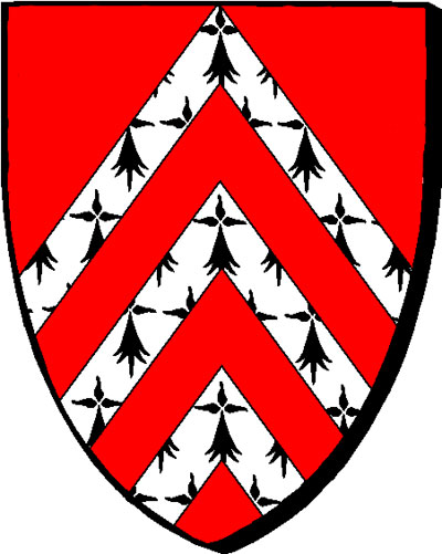 Famille de Trécesson : "de gueules à trois chevrons d'hermine / en gwad, e zri gebrenn en erminig" |